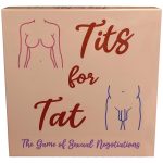 Tits For Tat Board Game from Kheper Games. Tits For Tat: the game for lovers that encourages communication and negotiation. Carry out foreplay actions as you move around the board, and collect cards with rewards specific to your gender. When you hit the Sexual Trade barrier, you negotiate with your lover what you are willing to do in return for what you want done to you. At the end of the game, you will end up with three agreed upon sensual and sexual rewards for each of you to act out with or on your lover. Your adventure at the end of the game changes each time as there are over 15,000,000 possible combinations. Adult Game includes: a colorful game board, 25 Sexual Reward Cards for Him, 25 Sexual Reward Cards for Her, an action die, a standard die, 2 game markers, easy to learn game rules. Categories: Party Games, Gifts, Supplies, X-Rated Adult Games, Books, Adult Games, Music, Adult Party Games, Sex Instruction. 2023.