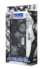TOM OF FINLAND SILICONE COCK RING W/3 WEIGHTED BALLS
