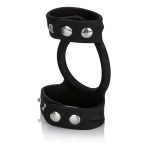Silicone Tri Snap Cock and Ball Cage Black from California Exotic Novelties. Enhance your erotic pleasure and performance with the Silicone Tri-Snap C&B Cage. The super stretchy support system is designed for comfort, stimulation, and stamina. The Enhancer elevates the intensity of your orgasm while ensuring a rock hard erection for prolonged play. The support cage is made from ultra soft and smooth, thick and super stretchy phthalate free, unscented Silicone, and offers a comfortable, fully adjustable fit. The Tri Snap design features heavy duty, Nickel free Hardware and a sensually styled Support Cage. The luxurious Triple Support System features Penis and Scrotum Rings, as well as a Total Package Support Strap. The erection keeper provides secure placement and stamina support for extended play, and a peak performance every time. Use the enhancer cage during intimate seduction with your lover, or for exotic solo fantasy fun. For increased sensations and pleasure, use a quality personal lubricant with this adult toy. Before and after use, clean the triple strap enhancement with mild soapy water or a toy cleaner spray. Bulk weight 1.6 ounces. 2 inches inner Scrotum Ring diameter, 7.75 inches by .75 inch Shaft Ring, 8.75 inches by .75 inch Scrotum Strap. Stretchy and comfortable Silicone Erection enhancer. Soft and smooth, thick and durable. Fully adjustable, three snap design. Heavy duty, nickel free hardware. Triple strap enhancement. Materials: Silicone Enhancer, Nickel free Iron rivets. Categories: Love Rings, Sleeves, Rings, Adjustable, Versatile Cock Rings, Men’s Cock and Ball Gear. 2023.