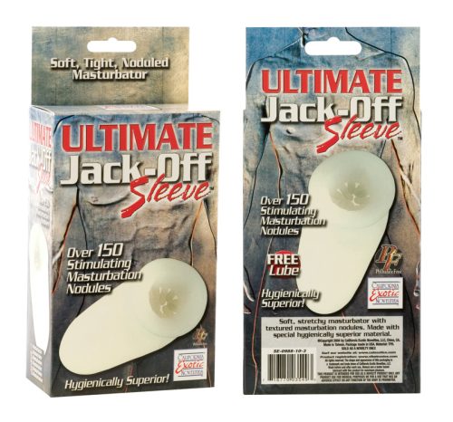 Ultimate Jack Off Sleeve is soft, tight and hygienically superior. Enhance and extend your intimate solo play with the Ultimate Jack Off Sleeve. The ultra soft and super stretchy, hygienically superior personal Stroker boasts over 150 stimulation nodules, for maximized and orgasmic sensual pleasure whenever you are in the mood. To experience heightened ecstasy, simply grab the Sleeve and start gliding your way to erotic satisfaction. The compact Sleeve measures 6 inches by 1.5 inches. Jack Off Sleeve is made from smooth, unscented phthalate free Thermoplastic Rubber TPR. The easy to use Masturbator lets you take full control of your intimate enjoyment. To increase sensitivity, a sachet of water based lube is supplied with this toy. The discreet pleasure shaft is perfect for first time and experienced users, and ideal for spontaneous personal pleasuring. Use the soft sleeve to explore your secret wild fantasies and to extend your solo play time fun. Before and after every use, always clean the textured Masturbator Sleeve with a toy cleaner spray, or wash it in warm, soapy water. Super stretchy rubber Jack Off Sleeve with over 150 stimulation nodules. Lube included. Safe and pure for body and pleasure. Made using phthalate free, non-toxic materials Thermoplastic Rubber TPR. Sleeve measures 6 inches long by 1.5 inches wide. Bulk weight 4.5 ounces. Always clean before and after use. A water based lubricant is recommended. Ultimate Jack-Off Sleeve is a registered trademark for California Exotic Novelties. Sex toys and sexual wellness. Colors may vary. Categories: Male Masturbators, Sex Toys for Men, Body Massagers, Health and Beauty Aids, Solo Masturbators, Masturbation Sleeves. 2023.