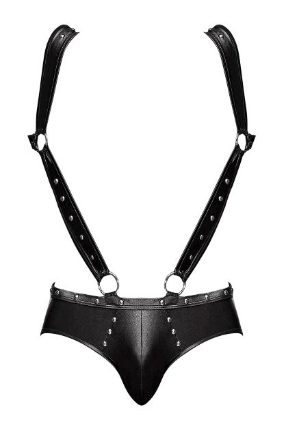 Uranus Studded Harness Black L/XL from Male Power Underwear. The name says it all. Uranus is the faux leather men’s fetish outfit that show cases your derriere. This fetish jock brief features suspender straps and a harness style back. Men’s fetish lingerie should bring a lot of fun to the bedroom; and this open Bacl Faux Leather Fetish outfit does just that! Whether you are a sub or a dom, you can definitely take your BDSM play to another level in this incredibly sexy faux leather men’s fetish outfit. Men size 12 to 18 large, extra large, L/XL. Waist Waist 40 inches to 42 inches. Hand wash, cold water. No bleach. Line dry. New images. Categories: Lingerie, Clothing, Bondage, Fetish and Kink, Body Harness, Men’s Underwear, Men’s Fetish Wear. 2023.