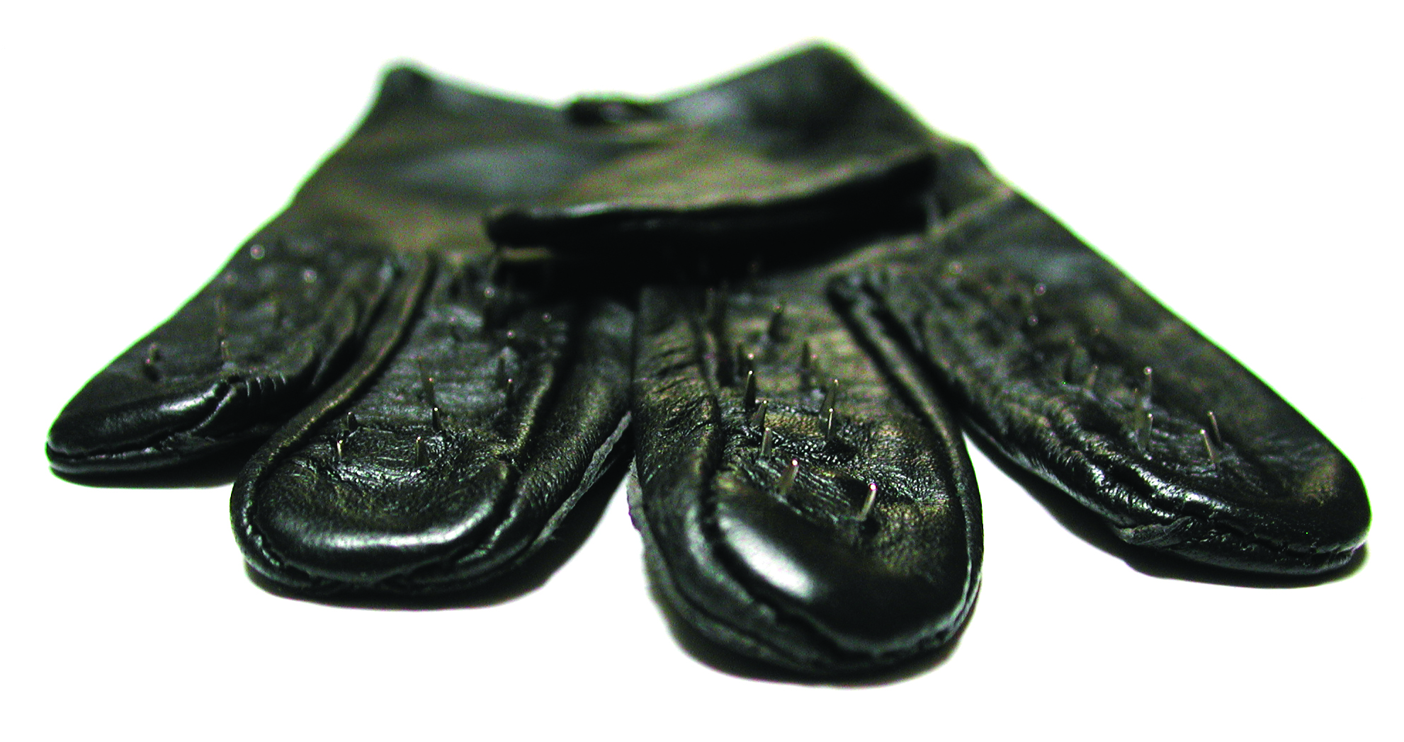 Kink Lab Vampire Gloves Leather with Prickly Metal Points Extra Large. Soft, thin, sexy leather gloves with a fierce side: prickly metal points on the palms and fingertips. Glove creates an intense ticklish sensation. Great for sensory play. To turn up the play try with a blindfold. Buttery soft leather that hides a bite, Kink Lab’s vampire gloves are an excellent tool for sensation play, masochism, and all sort of other kinky fun. The bottom of each finger is studded with lots of sharp points, making each touch and grab gasp inducing, punctuating even the slightest sensations. Available in four different sizes to fit almost any user, try the pair on a submissive, or use one glove on each other for an incredible experience. Color: Black. Type: BDSM Gloves. Material: Leather, Metal. Size: Extra Large.