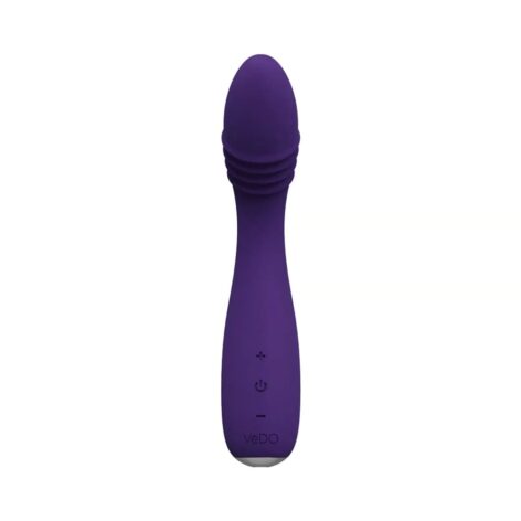 VeDO Ohni Rechargeable G-Spot Thrusting Vibe in Purple is here to thrust, buzz, and bend to your every whim. This dual-stimulation vibe pairs deep, rumbly vibrations with a thrusting G-spot head that hits just right. With 10 toe-curling vibrations and thrusting modes with 6 intensity levels, Ohni is designed to take you over the edge again (and again). The poseable neck flexes to your body, so you can find your perfect angle every time. Waterproof submersible, rechargeable, and always ready when you are, the Ohni vibrator is your go-to for next-level satisfaction, solo or together. 1 year factory warranty. Quality made by VeDO.VeDO Ohni Rechargeable G-Spot Thrusting Vibe FeaturesMade from body-safe, velvety silicone that feels gentle against the skin and flexes comfortably with movement.Flared Base for Safety: Keeps the plug securely in place and ensures confident, worry-free use.Fully Submersible: Safe for bath or shower play and easy to clean before or after any adventure.RechargeableDimensionsOverall Length: 4.25 inchesInsertable Length: 3 inchesWidth: 1 inch