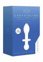 (WD) Chrystalino Rocker White Glass Butt Plug from Shots Toys. Plug features a tapered tip and a round ball end. The unique shape of this beautifully hand crafted rocker butt plug has been designed for anal play! Place the butt plug under a stream of lukewarm or cold water and the premium Borosilicate Glass material will heat up or cool down for enhanced temperature play. This beautiful butt plug is shatterproof, non-porous, body safe and will give a life time of pleasure! Size 4.6 inches by 1.57 inches by 1.22 inches. bulk weight .38 pound. Categories: Anal Toys, Prostate Massagers, P-Spot Stimulators, Solo Prostate Massagers, Small, Medium Butt Plugs, Sex Toys for Couples, Men, Women. 2023.