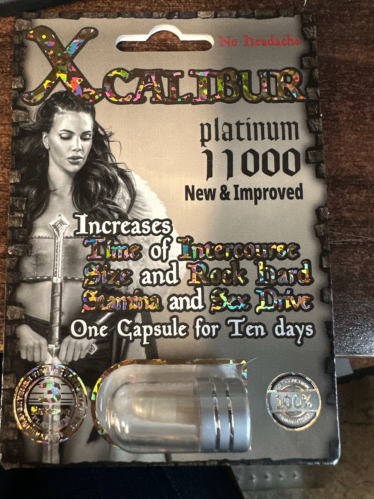XCalibur Platinum 11000 1 Piece 24 Pieces Male Enhancement Supplements are formulated with the highest quality ingredients. XCalibur can increase blood flow for harder erections, give you stronger orgasms, and help you last longer! XCalibur lasts up to 10 days and will help you gain back your sexual confidence. XCalibur Platinum 11000 1 Piece Male Enhancement Supplements are formulated with the highest quality ingredients. XCalibur can increase blood flow for harder erections, give you stronger orgasms, and help you last longer! The all new Xcalibur Platinum 11000 male enhancement pill.Take one capsule 30 minutes before sex to help energy, libido, and sexual performance. Can also be used on a regular basis to maintain optimal condition of readiness before sex. For better result, take it one hour apart from taking other supplements or medications. Product benefits: no headaches. Work in 30 minutes. Guaranteed Enhancement. No Prescription necessary. Maximize sexual confidence. Amazing increase in thickness. Experience rock hard Erections. Maximize volume of Ejaculation. Maximize the time of intercourse. Better ejaculation control, no limits. Maximize intensive, explosive orgasms. Maximize in length, width and stamina. 1 capsule last up to 10 days. Directions: take one capsule 30 minutes before sex to help energy, sexual performance.Can also be used on a regular basis to maintain optimal condition of readiness before sex. Ingredients: Supplement Facts amount: serving size 1 capsule Proprietary blend: 750mg. Daily value not established. Proprietary Blend: Go Ji Extract, Deng Sen Extract, Atractylodes, Dismutase, Cornus, Cuscuta, Dang Gui, Licorice, Codonopsis, Cordyceps Sinensis, Rubus, Panax Ginseng, Superoxide Dismutase, Proprietary Blend, Vitamin B12.Warning: use only as directed, do not take this product if you have a serious medical condition or take nitrates, nitro glycerin or prescription medications. Keep away from children and prohibited to be used by persons under the age of 18. Disclaimer: these statements have not been evaluated by the Food and Drug Administration FDA. These products are not intended to diagnose, treat, cure, or prevent any disease. XCalibur lasts up to 10 days and will help you gain back your sexual confidence. Key features: maximize the time of intercourse. Free from premature ejaculation. Better ejaculation. Maximize volume of ejaculate. Increase length and thickness. Rock hard erections. Maximize sexual confidence. Warning: keep away from children and prohibited to be used by persons under the age of 18. Categories: Meds, Supplements, Sex Pills, Health and Beauty Aids. 2024.