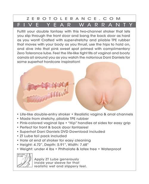 Dani Daniels Movie Download with Realistic Ass and Vagina Stroker from Zero Toleracne Toys. Fulfill your double fantasy with this two channel stroker that lets you slip through the front door and bang the back door as hard as you want! Crafted with super stretchy and pliable Thermoplastic ElastomersTPE that moves with your body as you thrust, use the hips to hold on, and dive into that pink sweet spot primed with complimentary Zero Tolerance Toys lube. Feel the life like tight fits of vaginal and booty canals all around you as you watch the notorious Dani Daniels for some superhot hardcore inspiration! Life like double entry stroker. Made from stretchy, pliable TPE realistic vagina and anal channels. Pink colored vaginal lips. Hip handles at sides for easy grip. Perfect for front and back door fantasies! Superhot Dani Daniels DVD Download included Zero Tolerance Lube foil pack included. Hole at end of stroker for easy cleaning. Height 4.72 inches, by depth 5.91 inches, width 7.68 inches. Weight under 4 pounds. Waterproof. 5 years warranty from Evolved Novelties. Categories: Male Masturbators, Solo Masturbators, Masturbators Porn Star, Pussy and Ass Strokers. 2023.